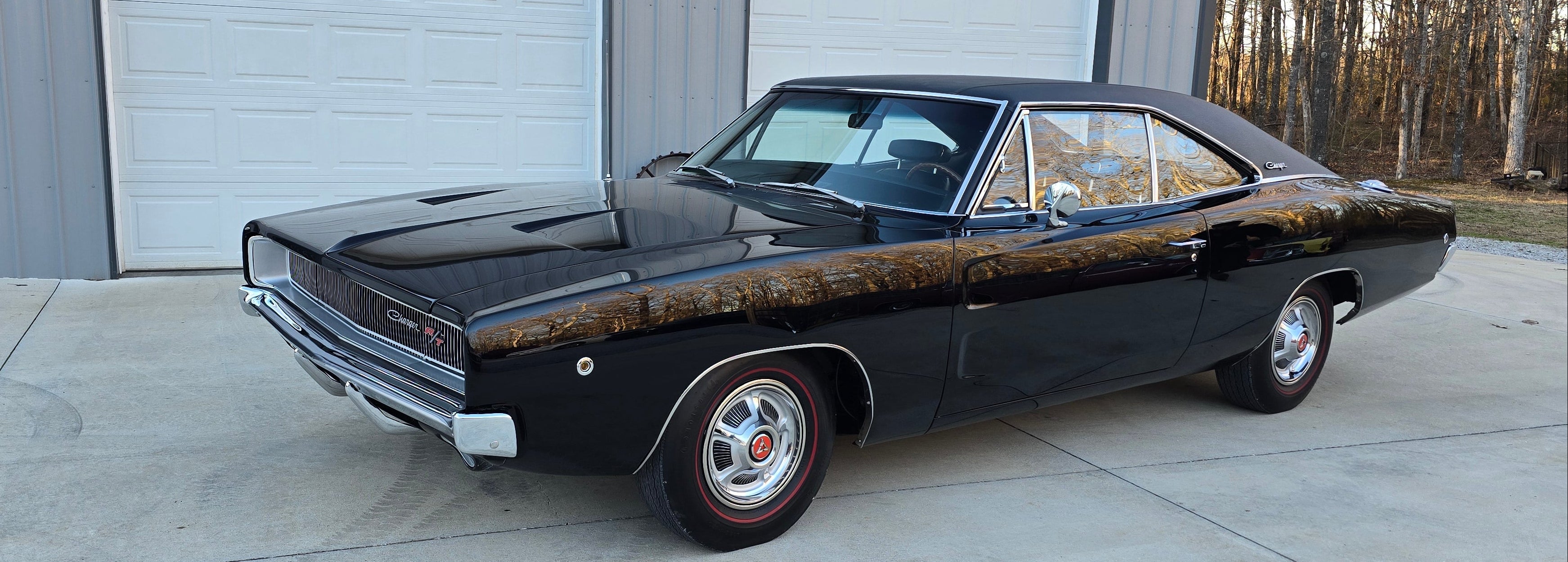 Brian's car came to us as a complete car but was lacking in the bodywork, so he commissioned us to tear it down and rework it into the quality level a 68 Charger RT deserves. Along the way a couple of upgrades have been made including a Holley terminator fuel injection system with matching ignition system, and electric hideaway headlights.