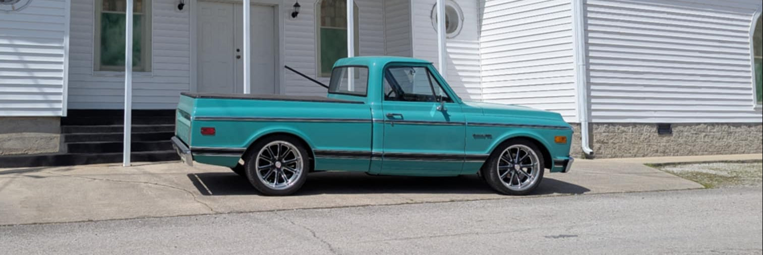 Donnie brought his C10 to us for an altitude adjustment and a mechanical redo. The crew flew in and replaced his tired small block with a healthy 383 from Blueprint Engines. The truck was rewired front to back, a Holley midmount accessory drive was added to the front of the engine. Vintage Air surefit kit was custom installed to give a clean look under the hood and keep Donnie comfortable while cruising. The firewall was smoothed out and resprayed the factory green. We think this truck is the ideal cruiser with just enough creature comforts and plenty of power to motivade the little hauler.